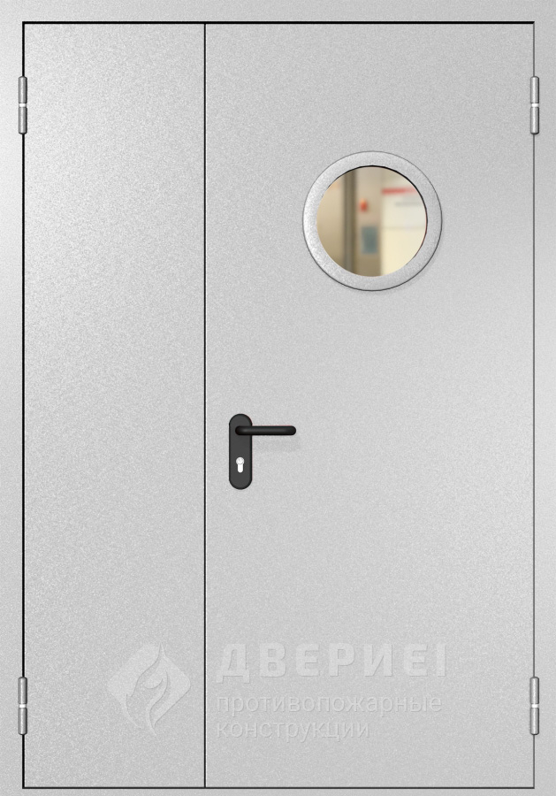 Полуторная противопожарная дверь с выпадающим порогом с круглым окном №6
